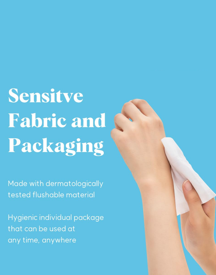 These flushable wipes are packaged individually for convenient use and can be taken with you wherever you go.