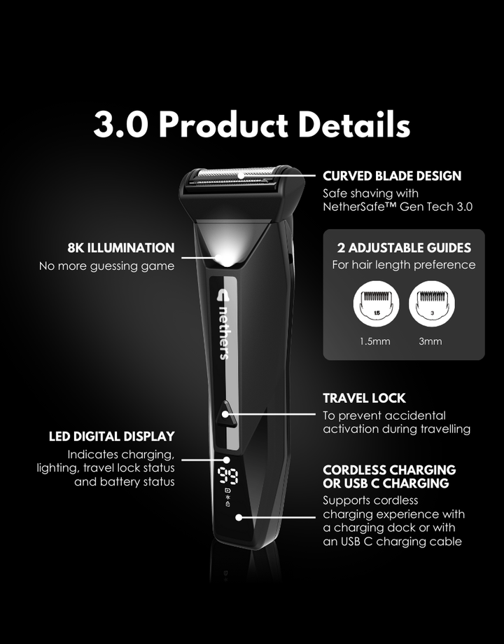 Nethers Undercut Shaver 3.0 for Mens Private Manscaping & Shaving Body Hair