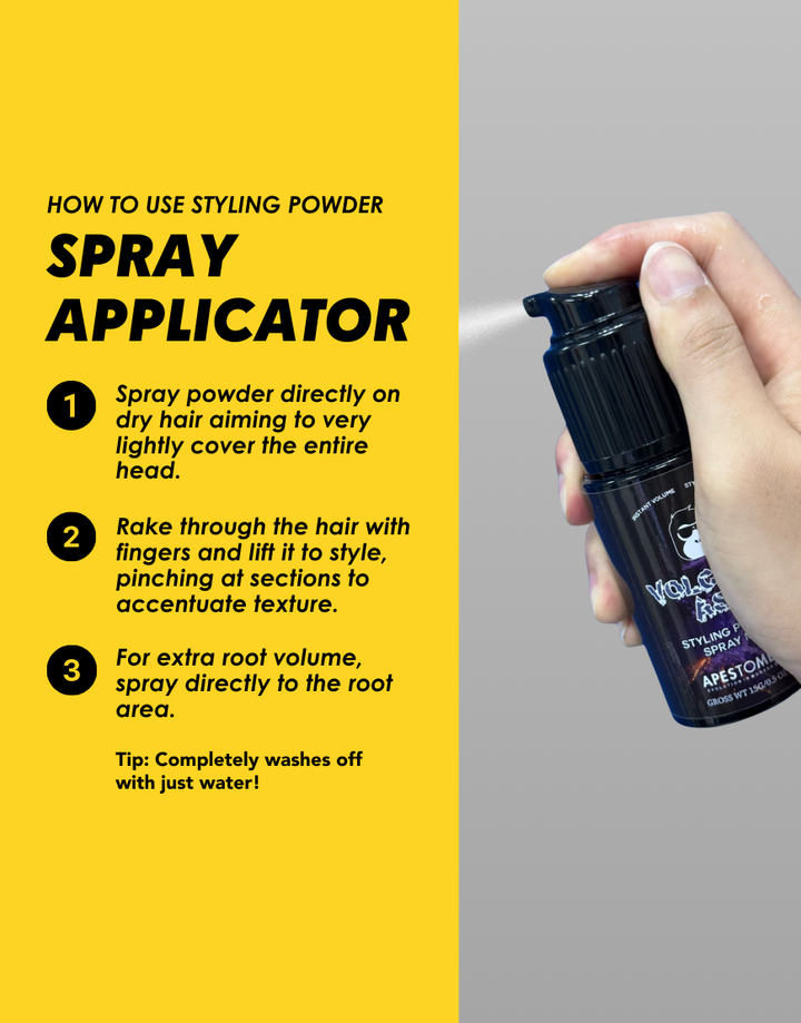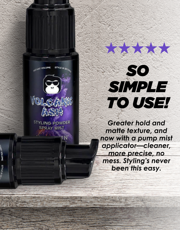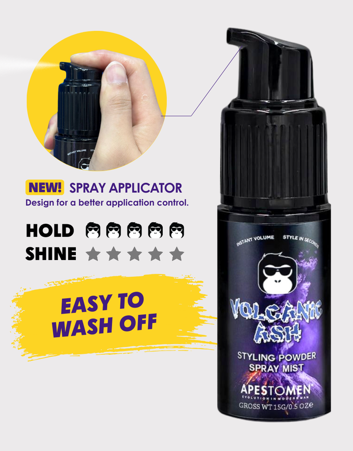 Experience a new era of hairstyling with the Apestomen Volcanic Ash Styling Powder Spray Mist — now in an upgraded pump applicator for mess-free, even coverage. This matte-finish spray powder delivers a strong, yet weightless hold, making it perfect for short to medium hair lengths and styles that need texture, lift, and volume.